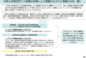 これまで「入院基本料の増点」で対応されていた「事務職員」や「40歳未満の勤務医師」についても、今後は「ベースアップ評価料」と同様の仕組みに組み込まれ、「確実に賃金が上がったか」の実績検証が厳格化される方向です。