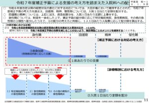 将来の改定(令和8年)を待たず、直近の補正予算による「医療分野における賃上げ・物価上昇に対する支援」(交付金)も具体化しています。これは申請ベースになると思われますので、確実に受け取る準備をしてください。