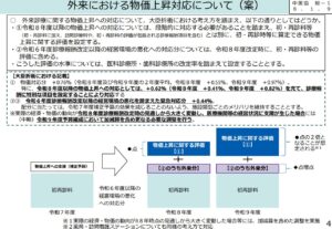 • 外来診療: 初・再診料等とは別に、「物価上昇に関する評価」という特別な項目が設定されます。