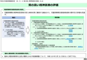 児童思春期の疾病構造の変化、患者数の増加などを踏まえて、児童思春期支援指導加算の要件および評価が見直されました。