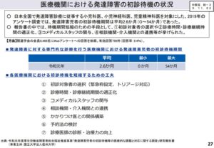 また、発達障害を診療する医療機関における初診待機期間は令和元年において平均2.6か月、最大54か月というデータも示されており、児童思春期の受入体制確保は課題になっています。