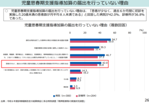 届出を行わない理由として、「患者が少なく、過去6か月間に初診を実施した20歳未満の患者数が月平均8人未満である」等の理由で回答されています。
