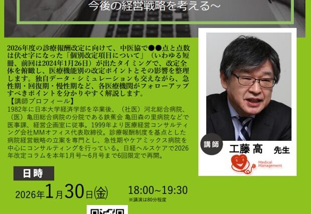 医療介護経営セミナー開催情報【講師:MMオフィス工藤高先生】